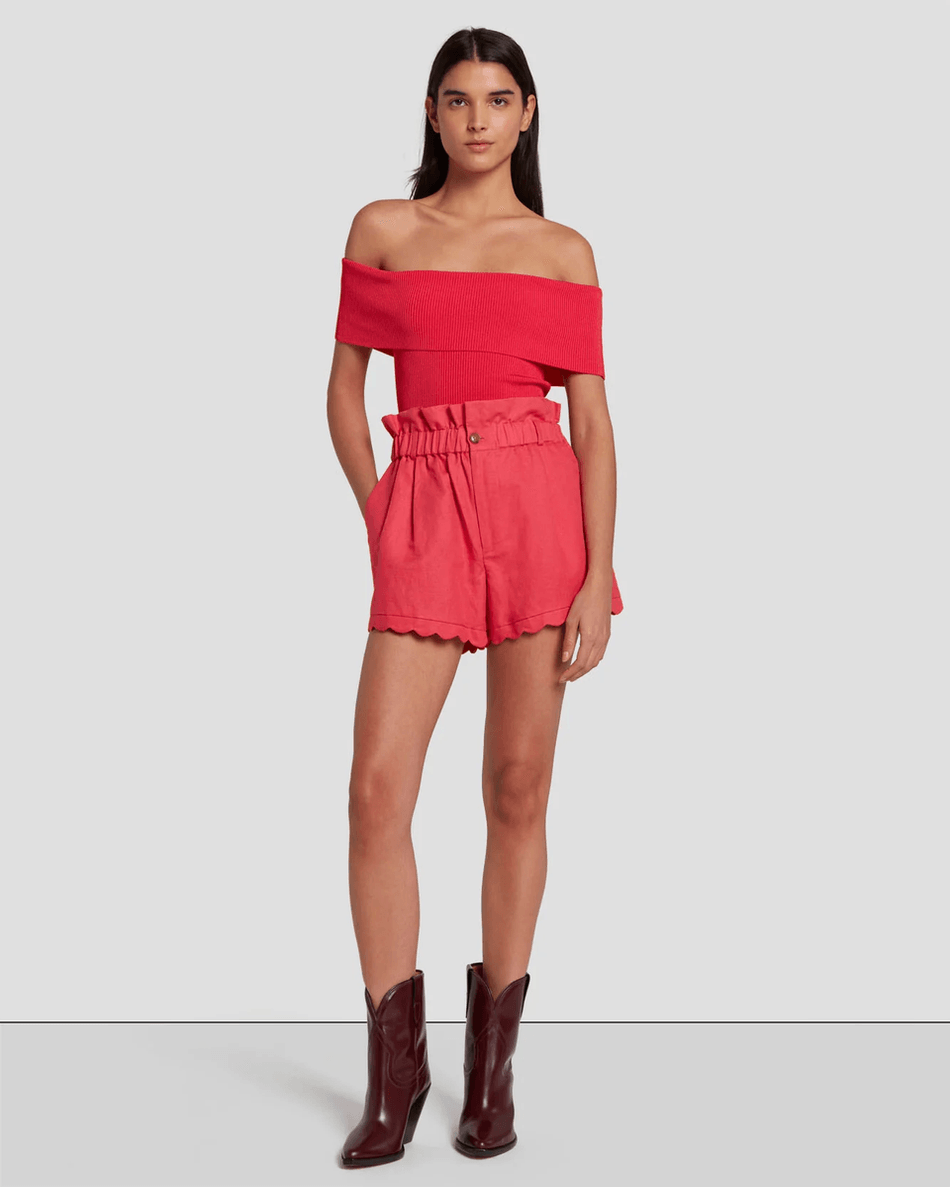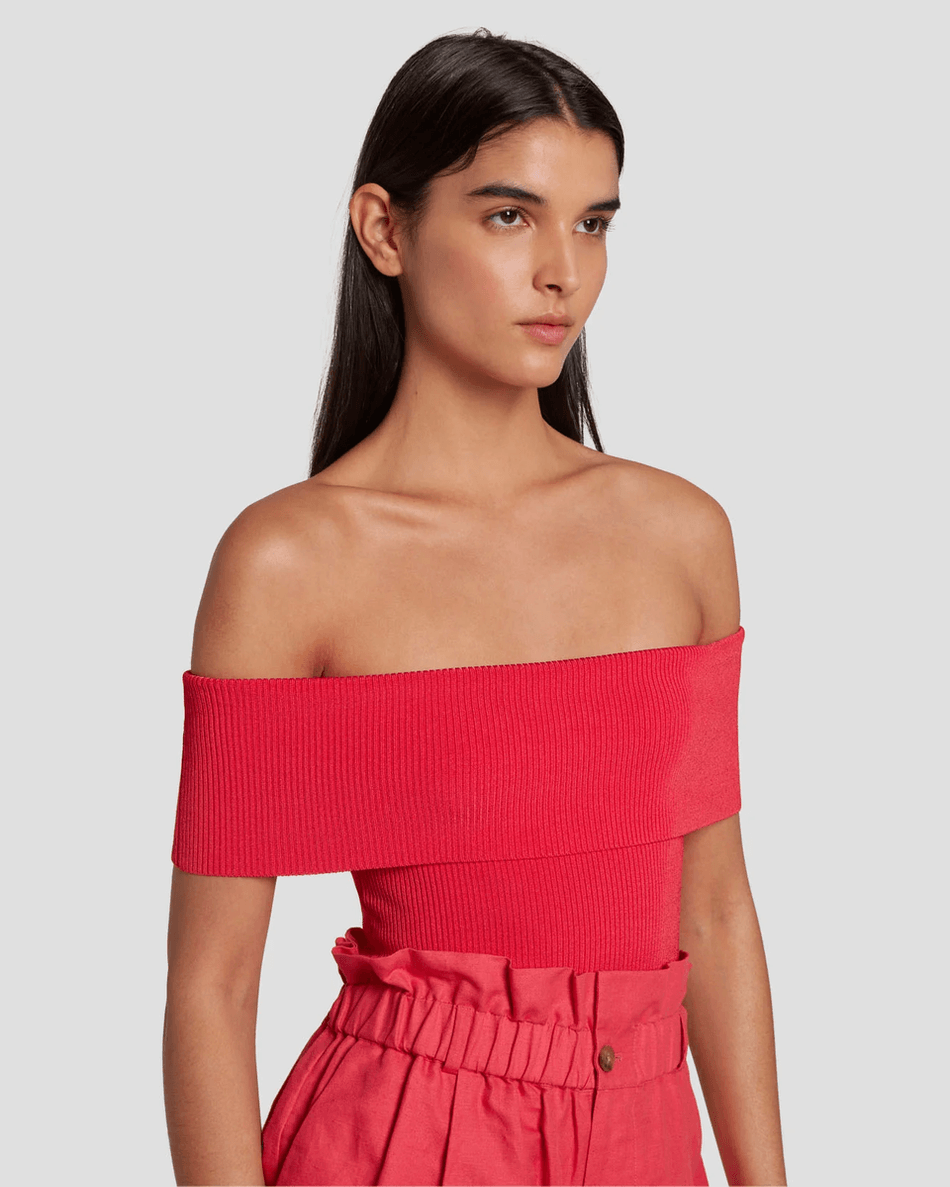 7 For All Mankind Off The Shoulder Ribbed Top in Geranium Geranium