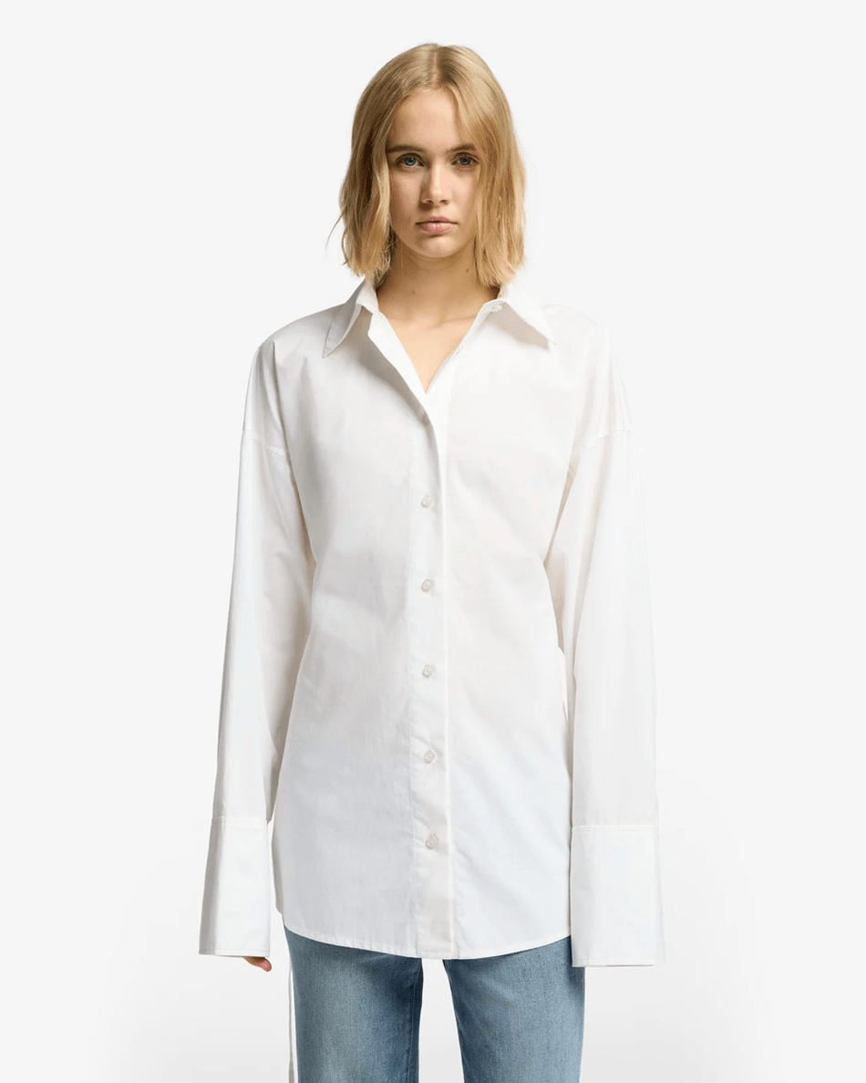 Discover the 7 For All Mankind Open Back Poplin Shirt in White