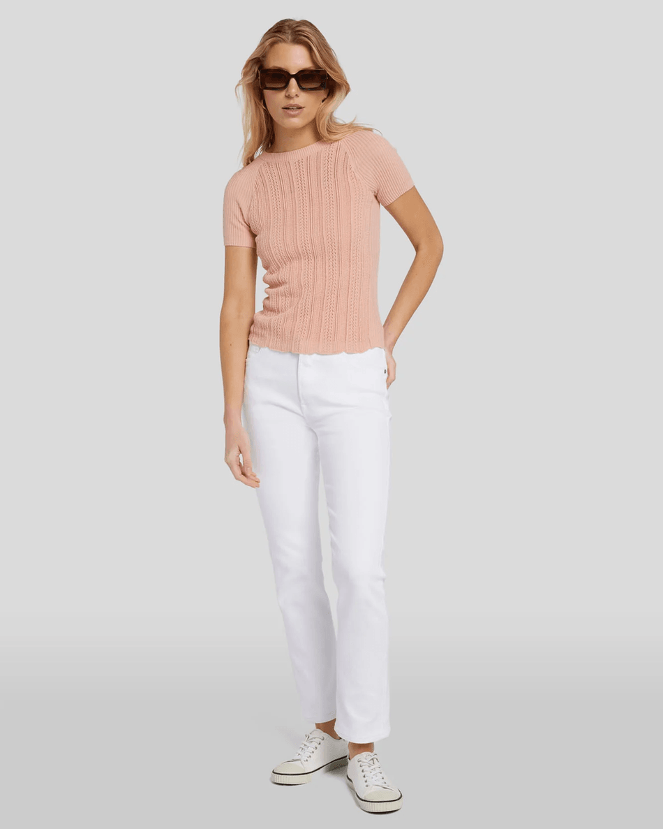 Discover the 7 For All Mankind Pointelle Knit Tee in Spanish Villa