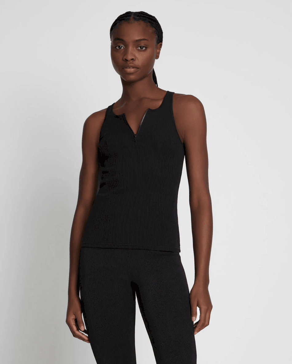 Discover the 7 For All Mankind Quarter Zip Ribbed Tank in Moonless Night