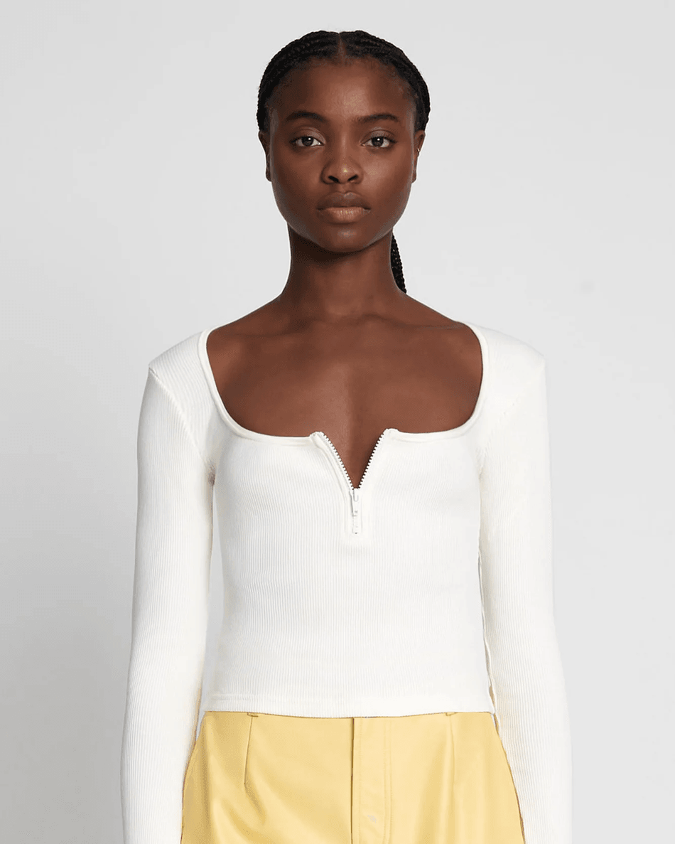 Discover the 7 For All Mankind Quarter Zip Ribbed Top in Antique White