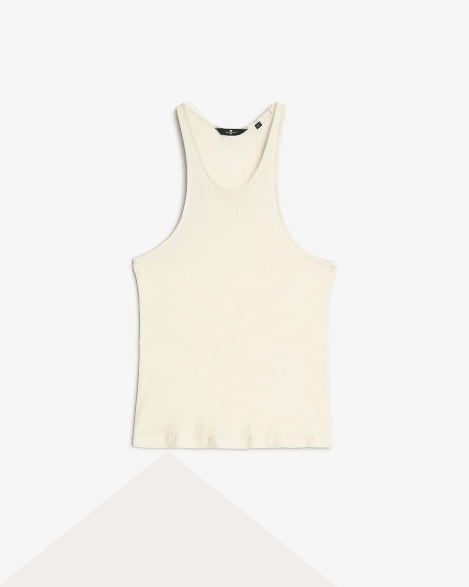 Don't miss out on the chance to own the 7 For All Mankind Racer Front Tank in White White. Add it to your cart today and redefine your summer style with this essential piece!
