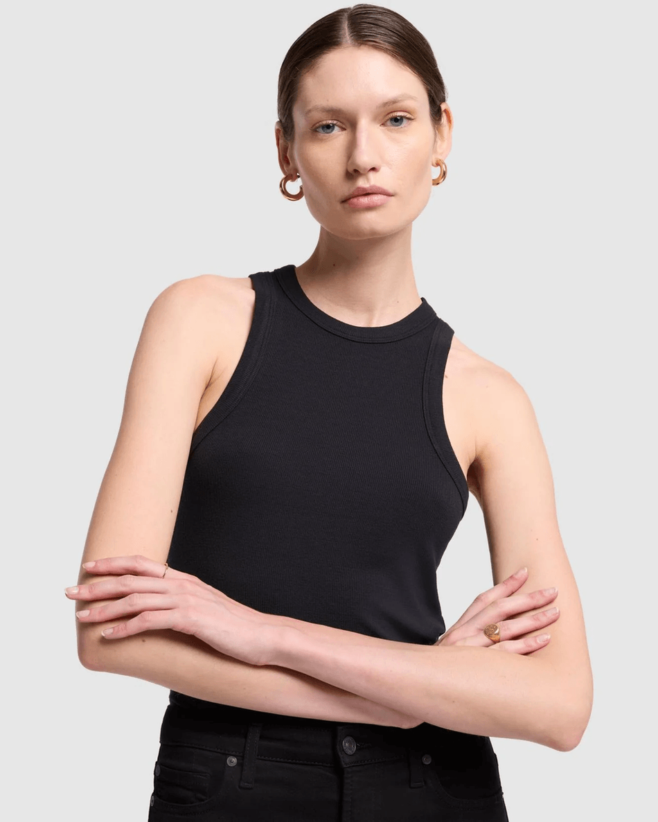 Elevate Your Wardrobe with the 7 For All Mankind Ribbed Racerback Tank in Black