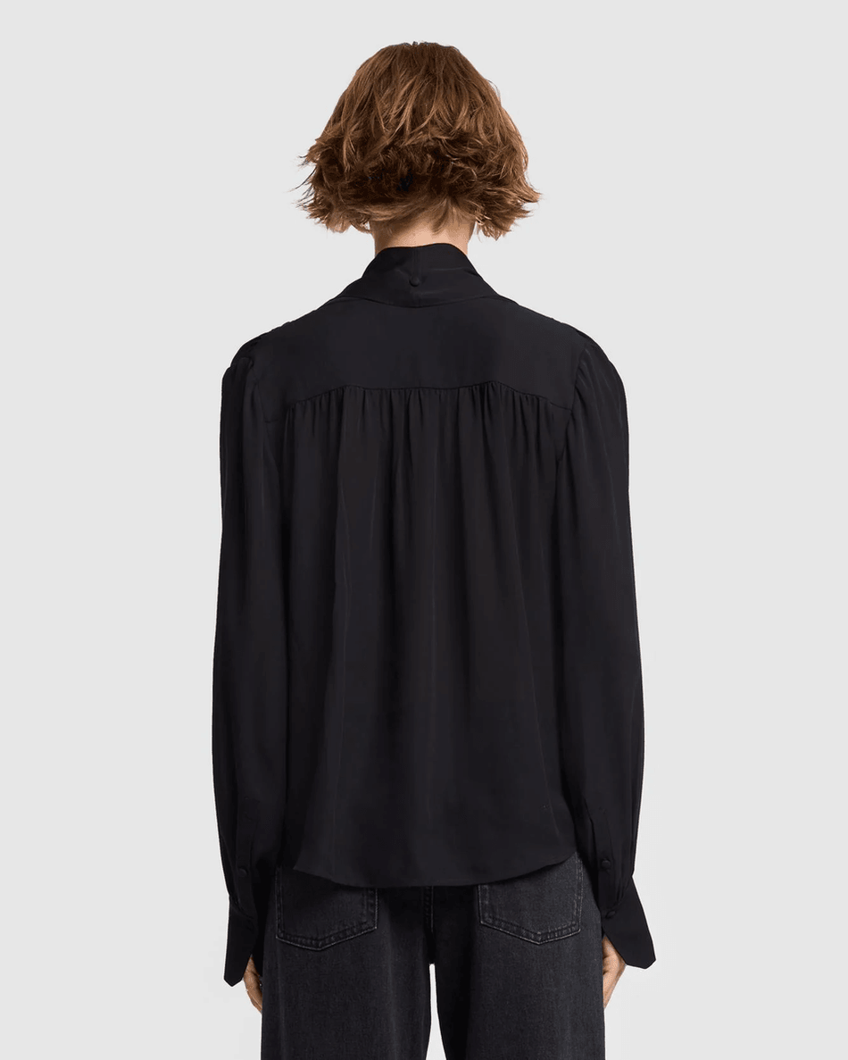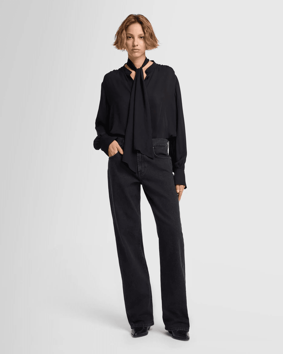 Elevate Your Style with the 7 For All Mankind Silk Bow Shirt in Black Black