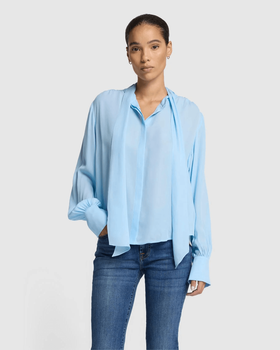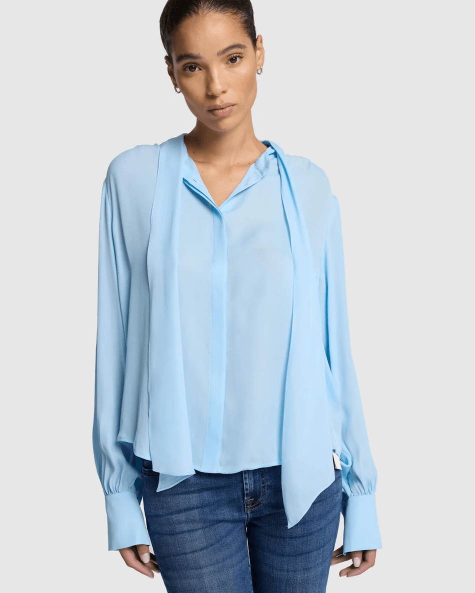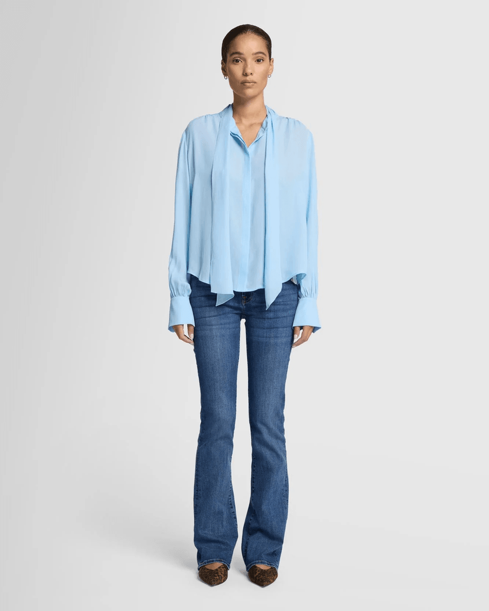 Don't miss out on the chance to own the 7 For All Mankind Silk Bow Shirt in Starburst. Order now and transform your style with this must-have addition to your wardrobe!