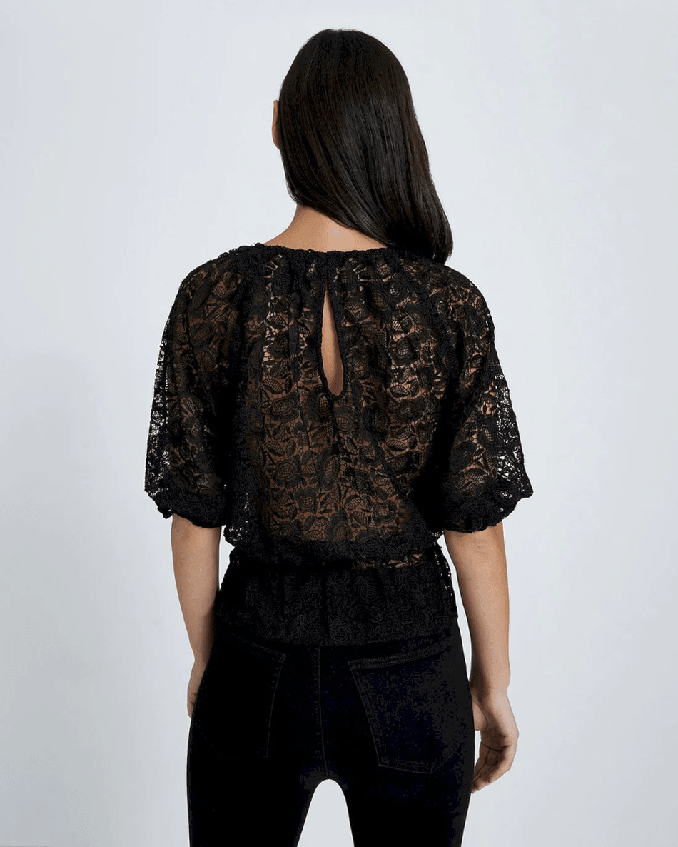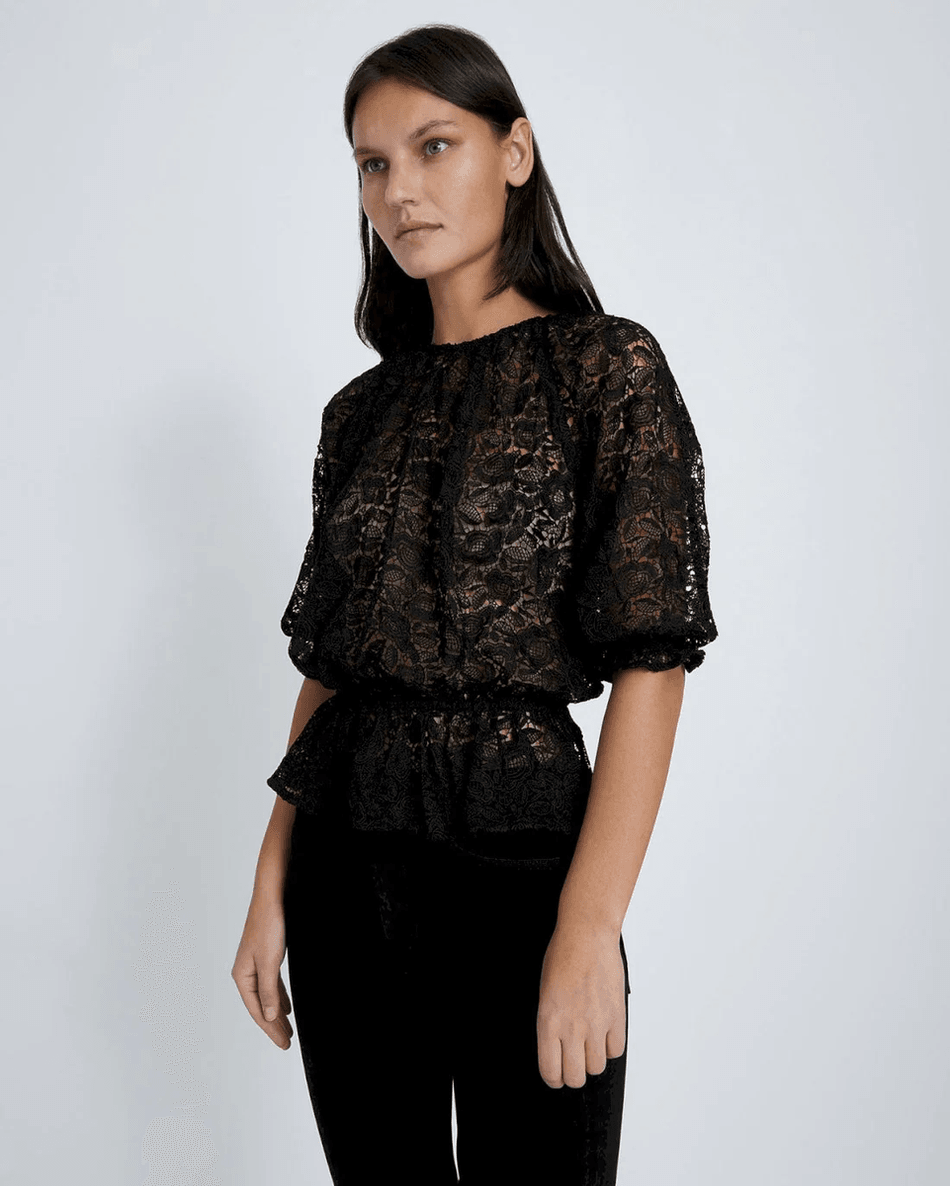 Discover the 7 For All Mankind Soft Volume Lace Top in Black
