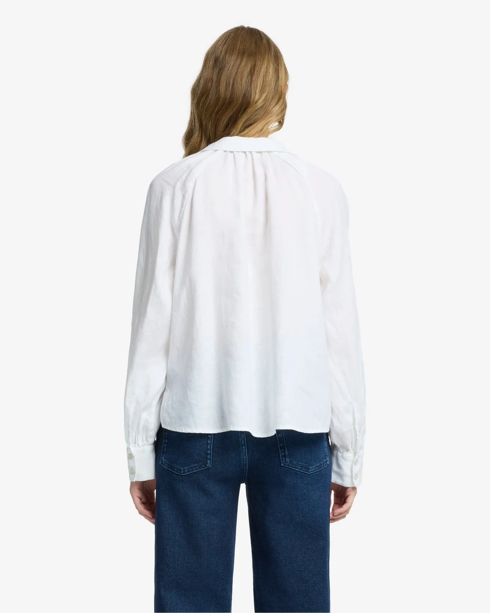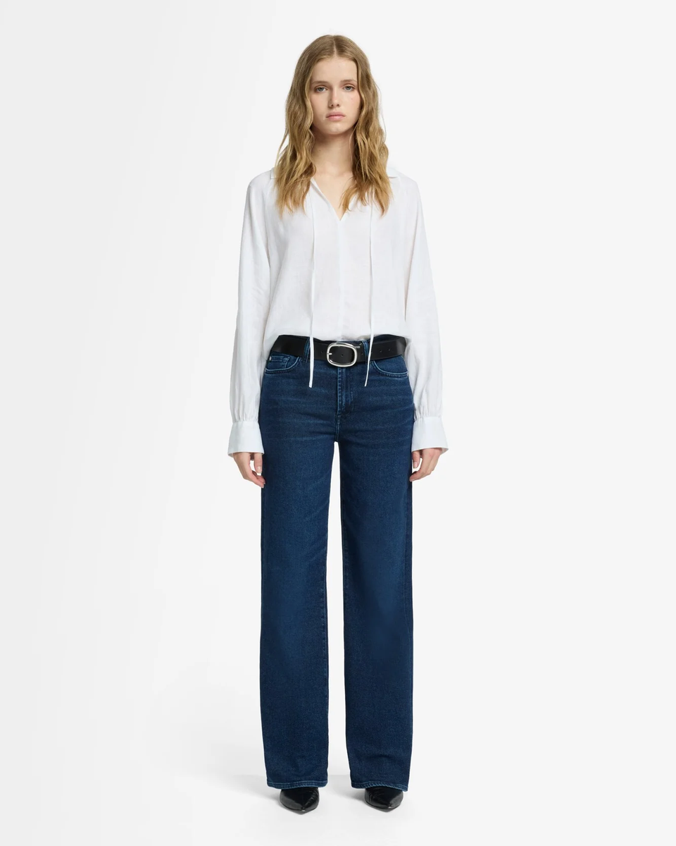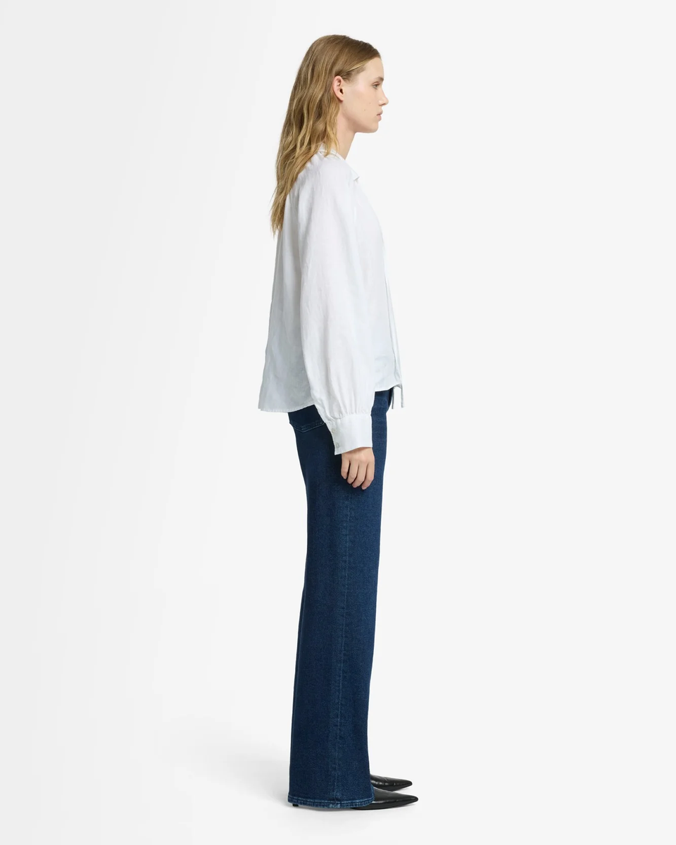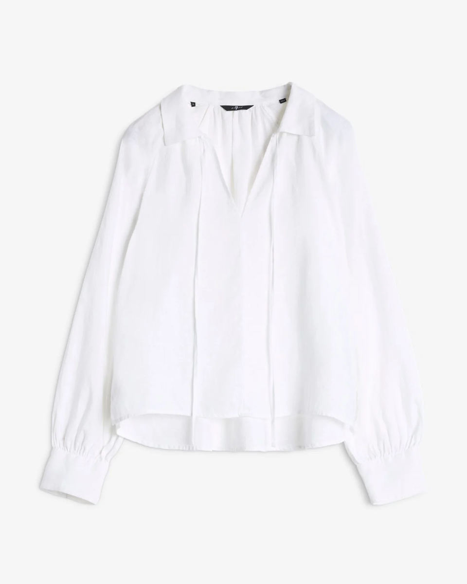 Discover the Elegance of the 7 For All Mankind Tie Neck Linen Blouse in Optical White
