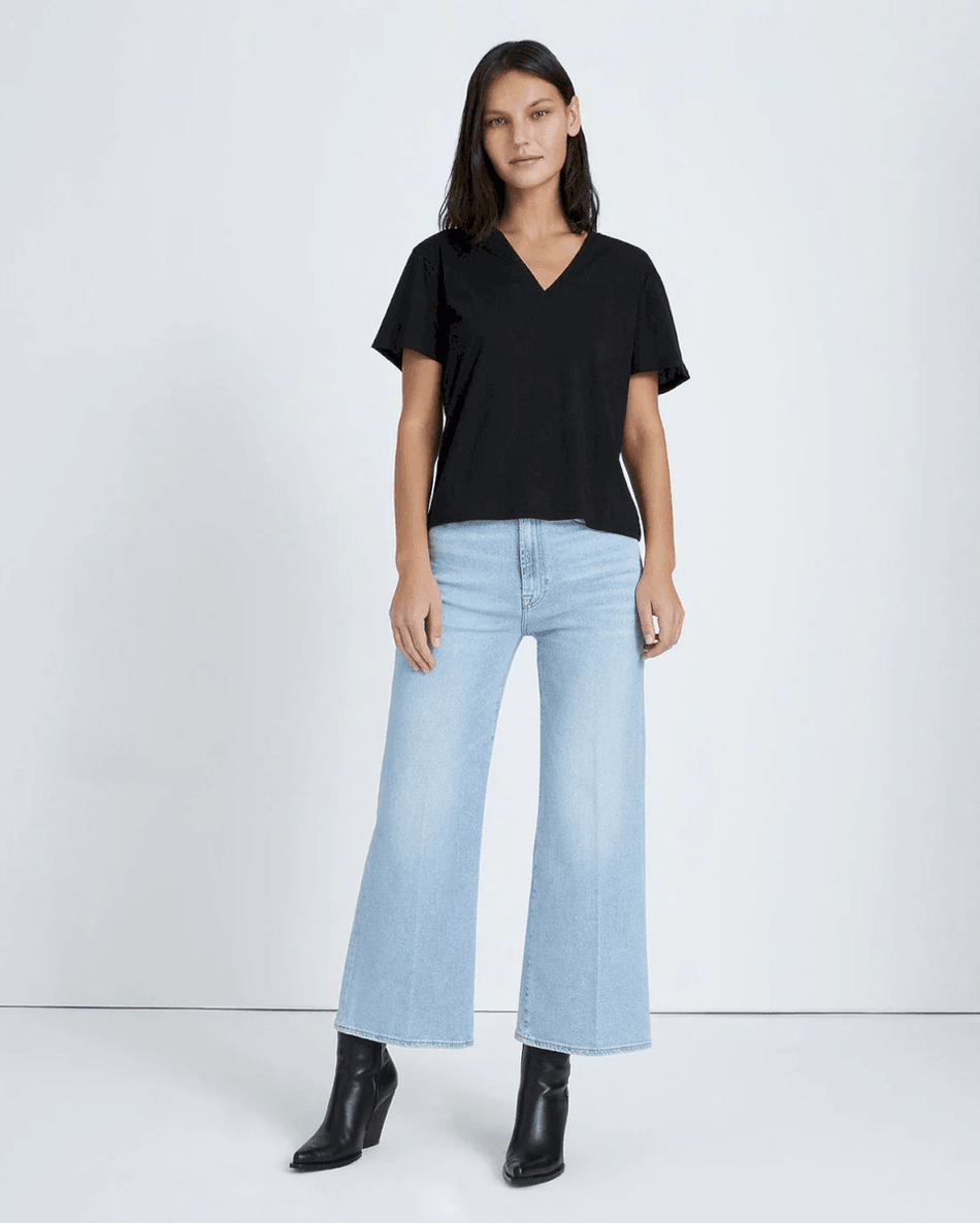 Elevate your casual wardrobe with the 7 For All Mankind V-Neck Tee in Black. This relaxed fit tee combines comfort and style, making it an essential piece for every fashion-forward woman.